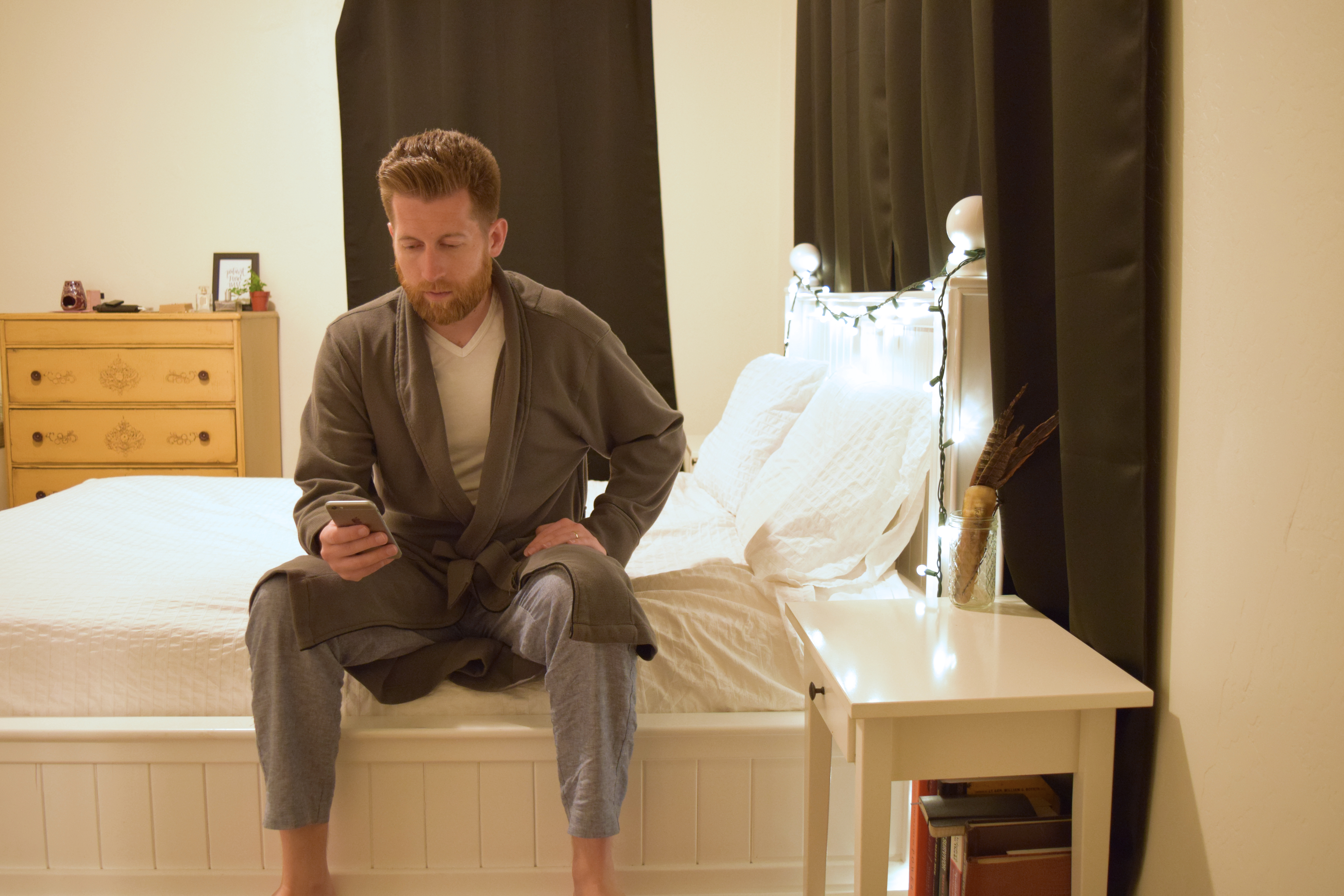 Most of the time I’m sleeping in the Dude setup, but both before I go to bed and after I wake up, I’ll have a night robe on.