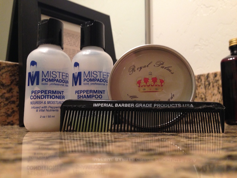 A while back Mr. Pompadour reached out to me and offered to send me a few of their products to try out. The pomades they sent left my hair too crunch and didn’t hold as well as I’d like (more on that in a minute), but they won me over with their shampoo and conditioner. Both do their jobs well, smell great, and leave my hair feeling clean and healthy, instead of just stripped down. I’d been using American Crewe before, but am now in Mr. Pompadour camp.